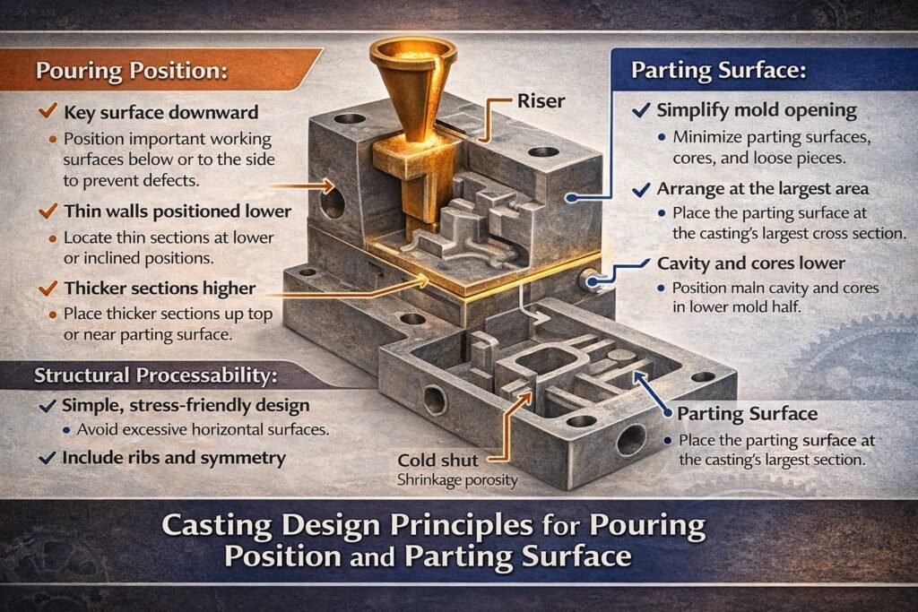 Casting Design Principles for Pouring Position, Parting Surface, and Structural Processability