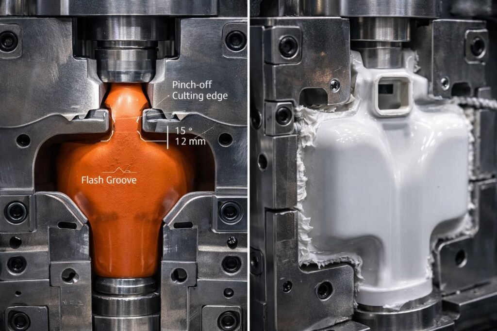 Good pinch-off and flash groove design can improve sealing performance, reduce trimming difficulties, and help maintain stable blow molding quality.