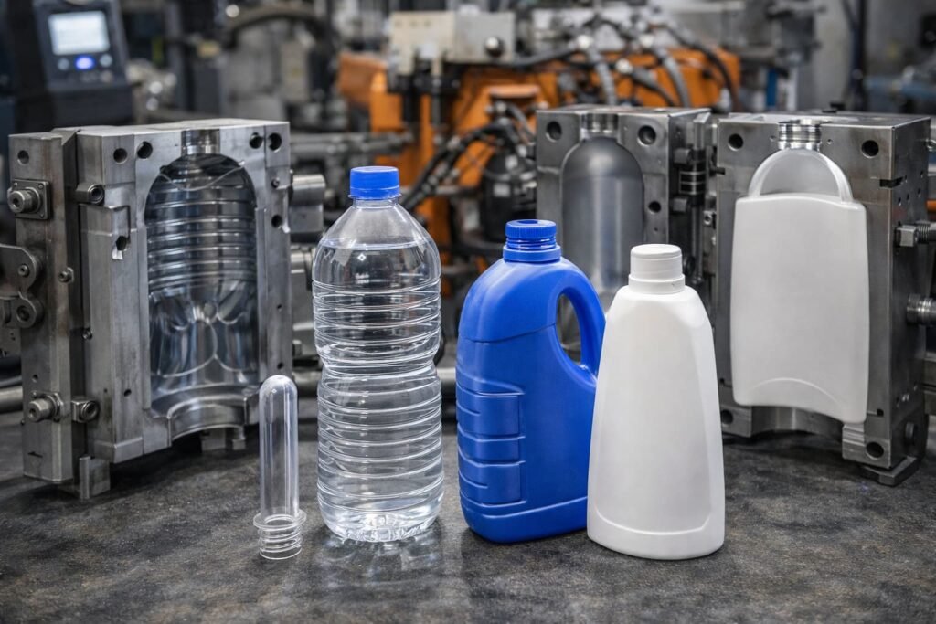 Injection stretch blow molding is commonly used for PET bottles. In this process, the preform is stretched mechanically and inflated at the same time. This improves clarity, strength, and material distribution, making it ideal for beverage and water bottles.